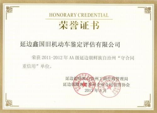 2011-2012守合同重信用證書(shū)