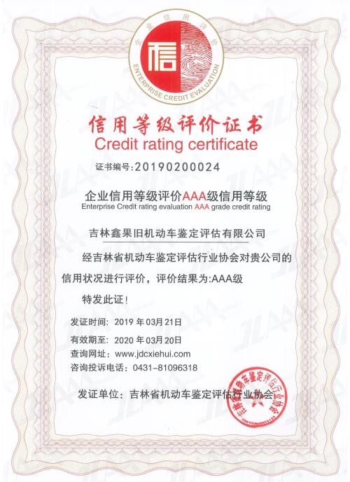 鑫果信用等級證書(shū)