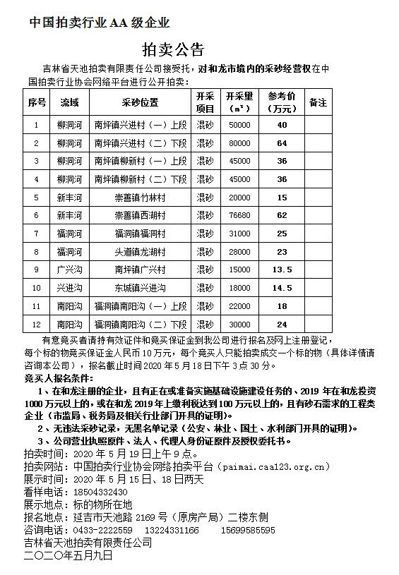 和(hé)龍市境內(nèi)的采砂經營權拍賣