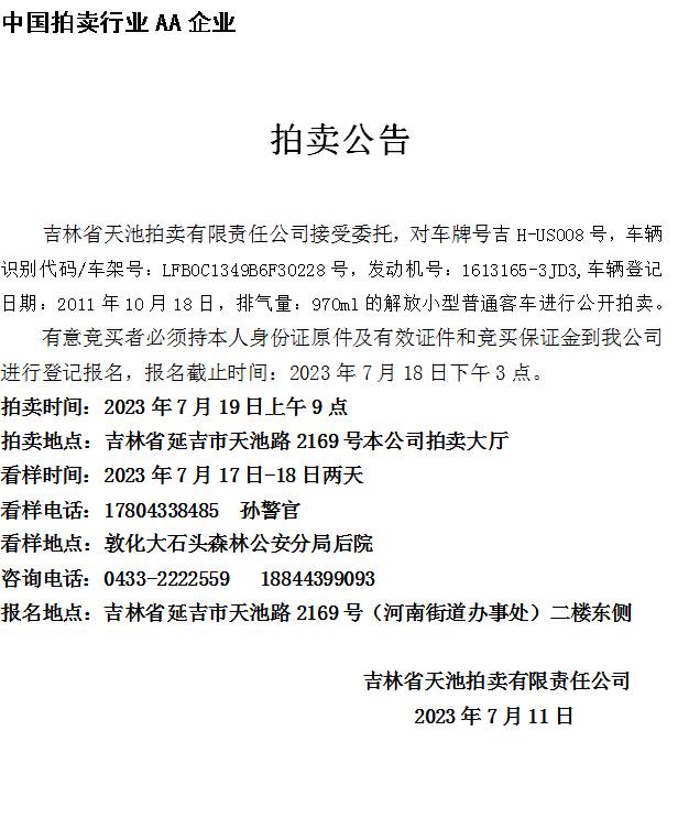 下一篇: 延吉市團結路99号(新世紀道(dào)北)四處商業用房(fáng)整體(tǐ)拍賣